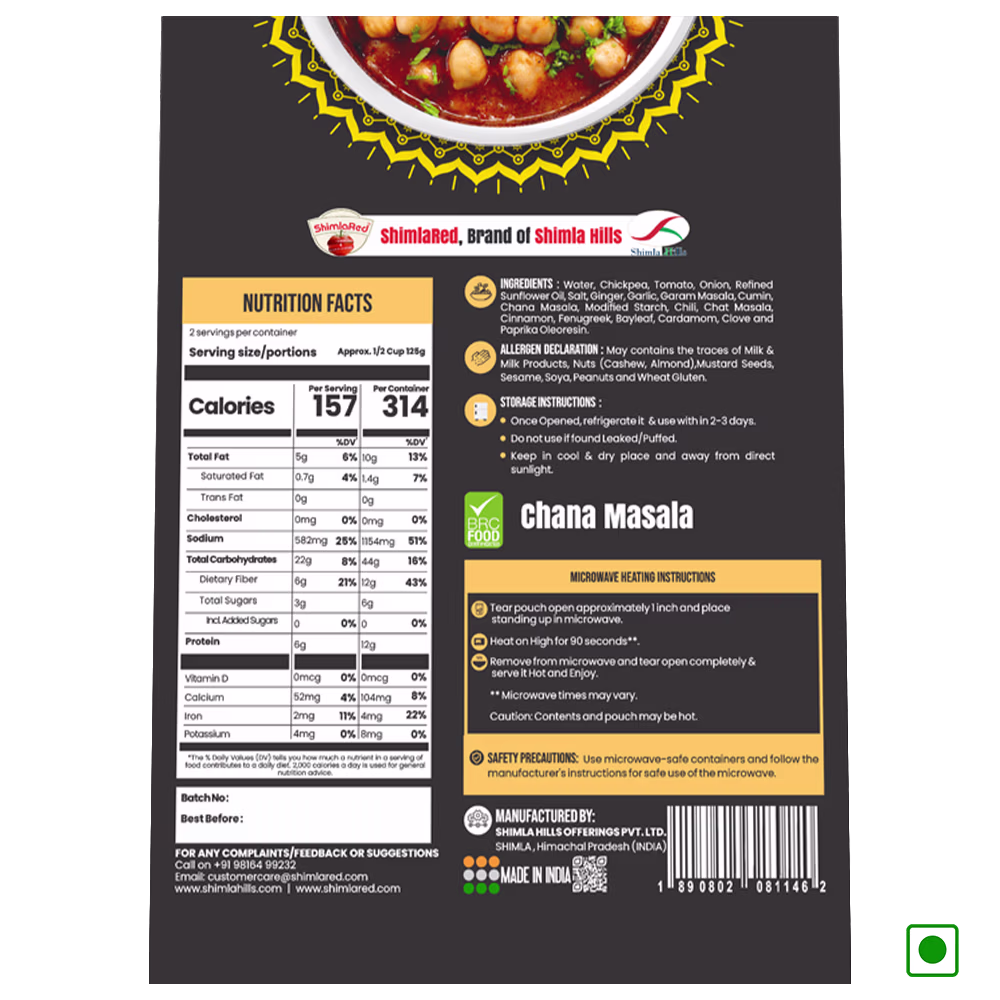 Explore the vibrant world of authentic Indian food with ShimlaRed Chana Masala. This savoury dish, which is handcrafted with a blend of aromatic spices and premium quality chickpeas, is a culinary symphony for your palate. Savour the essence of classic Indian flavours instantly with our ready-to-eat packaging for more convenience. With the refinement of our premium packaging, you can elevate your eating experience while relishing every bite.