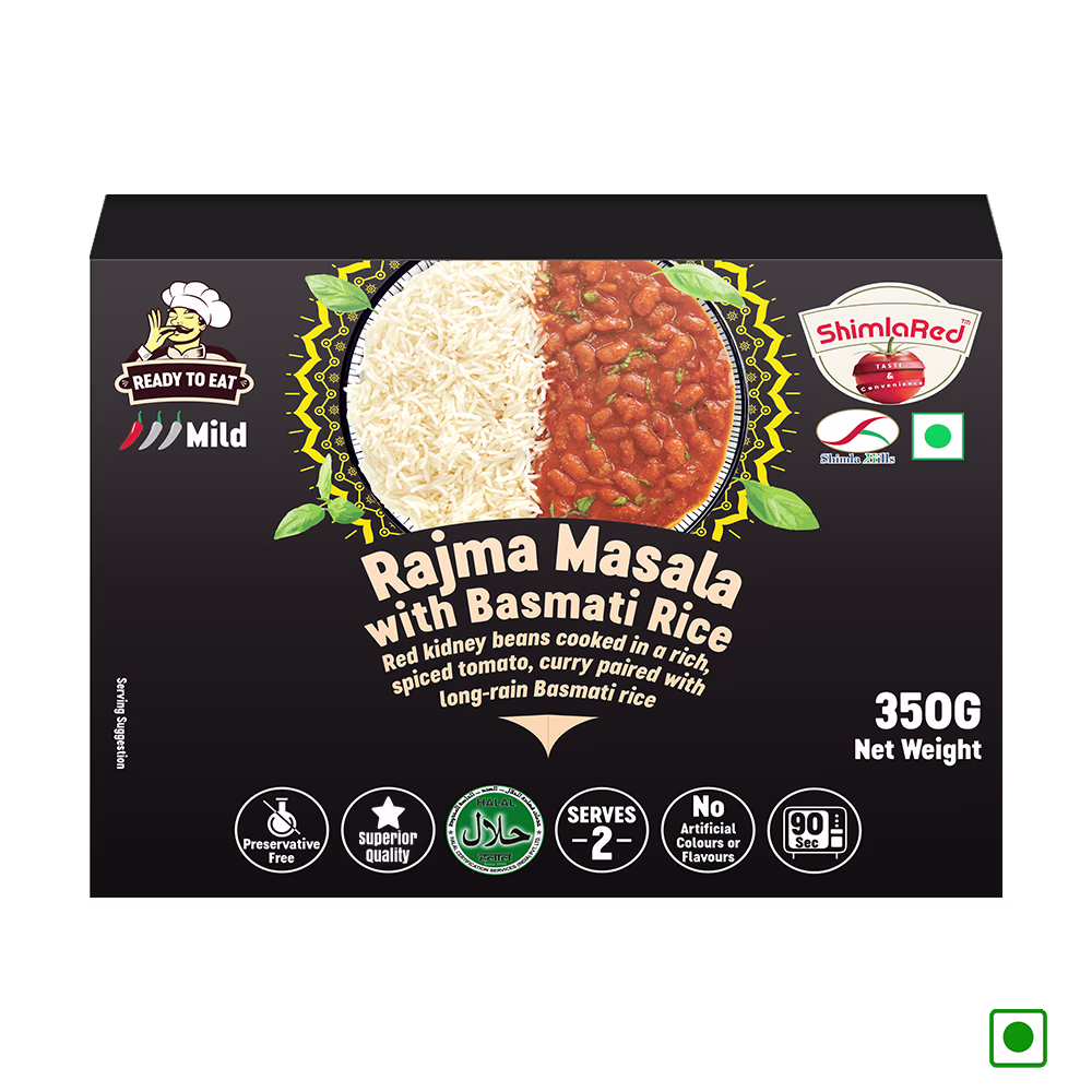 In a rush and craving a hearty meal? Look no further! Indulge in the rich flavours of ShimlaRed RTE combo meal – Rajma Masala with Basmati Rice. This premium combo meal package features cooked kidney beans in a flavourful curry made with authentic spices and cooked Basmati rice. Since it comes in an easy-to-use RTE pack, all you need to do is put it in a microwave for 90 seconds and enjoy your fine dinner instantly.